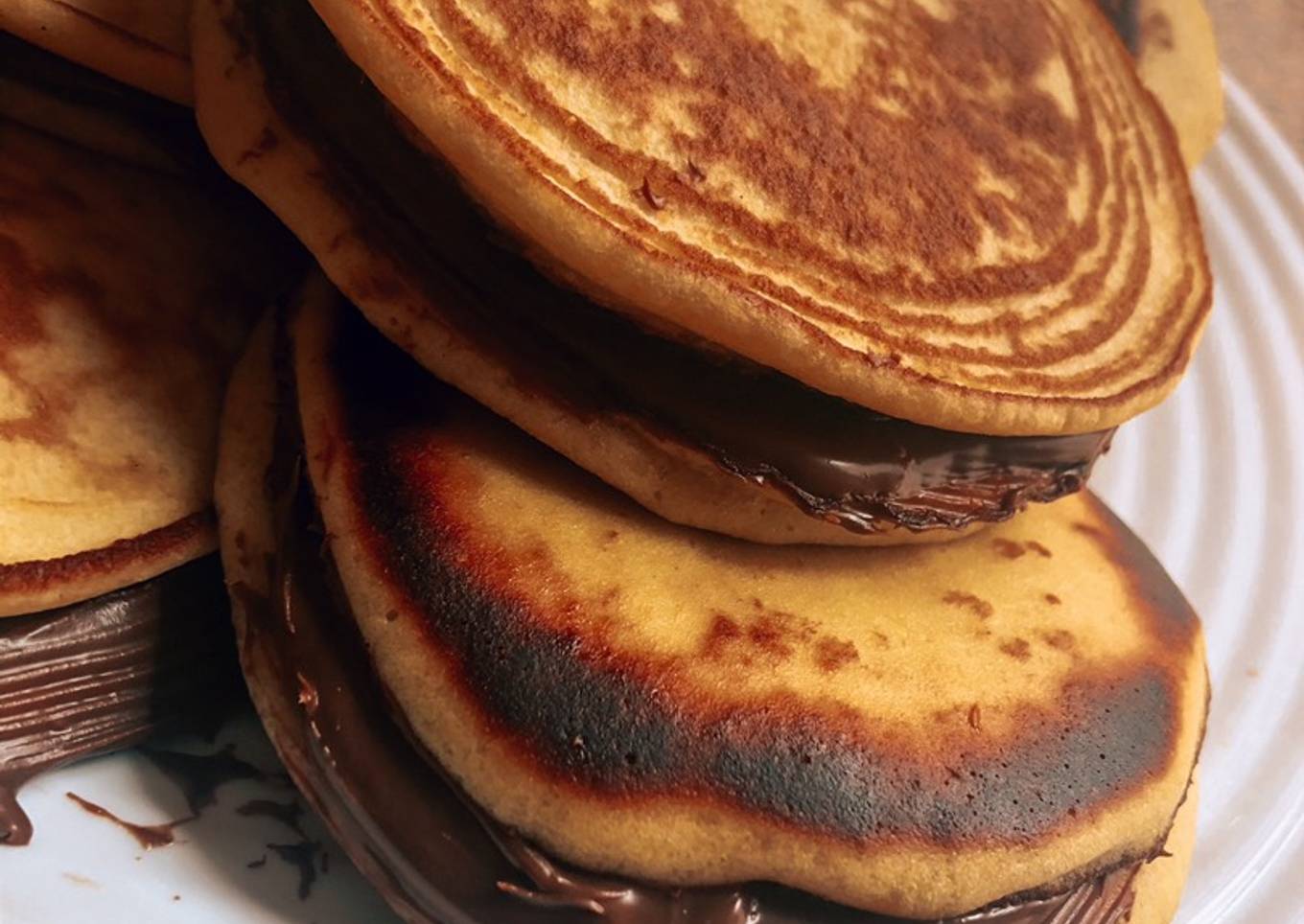 - Cogemos un dorayaki, ponemos Nutella y ponemos encima otro dorayaki como si fuera un sándwich. Envolvemos en film transparente para que no se pongan duros.