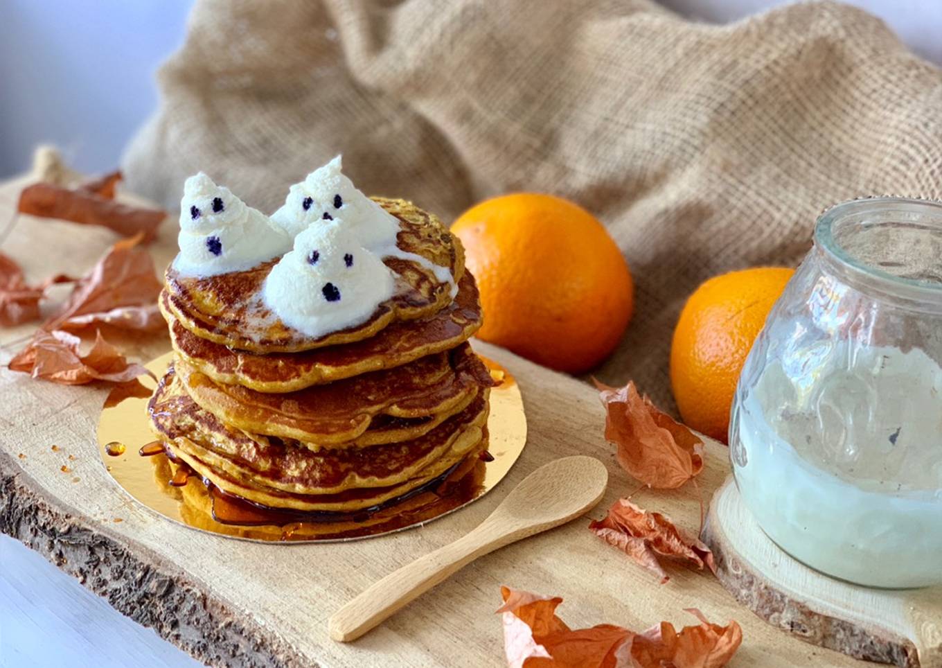 Ahà va mi idea para las #RecetasdeHalloween 😱🎃👻 estas tortitas de calabaza salen súper esponjosas y además muy ricas. Lo mejor de todo es que son con ingredientes más saludables y no aportan tantas kcal como las tortitas tradicionales.